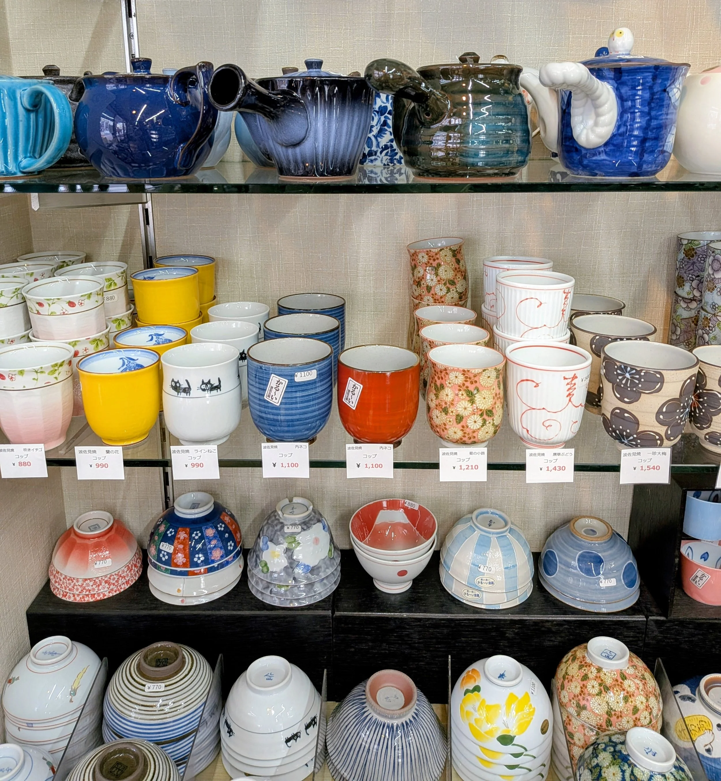 The tea ceremony is close to Asakusa’s downtown area so afterwards we walked down Kaminarimon Street to look at kitchenware. Asakusa is known for ceramics and kitchen knives so we went into a couple of stores including Yamakichi, where I purchased a beautiful handpainted ceramic mug. We ended up at their sister store, Honke-Kaneso, a knife shop since 1873 and Mark bought a custom kitchen knife with his initials engraved.